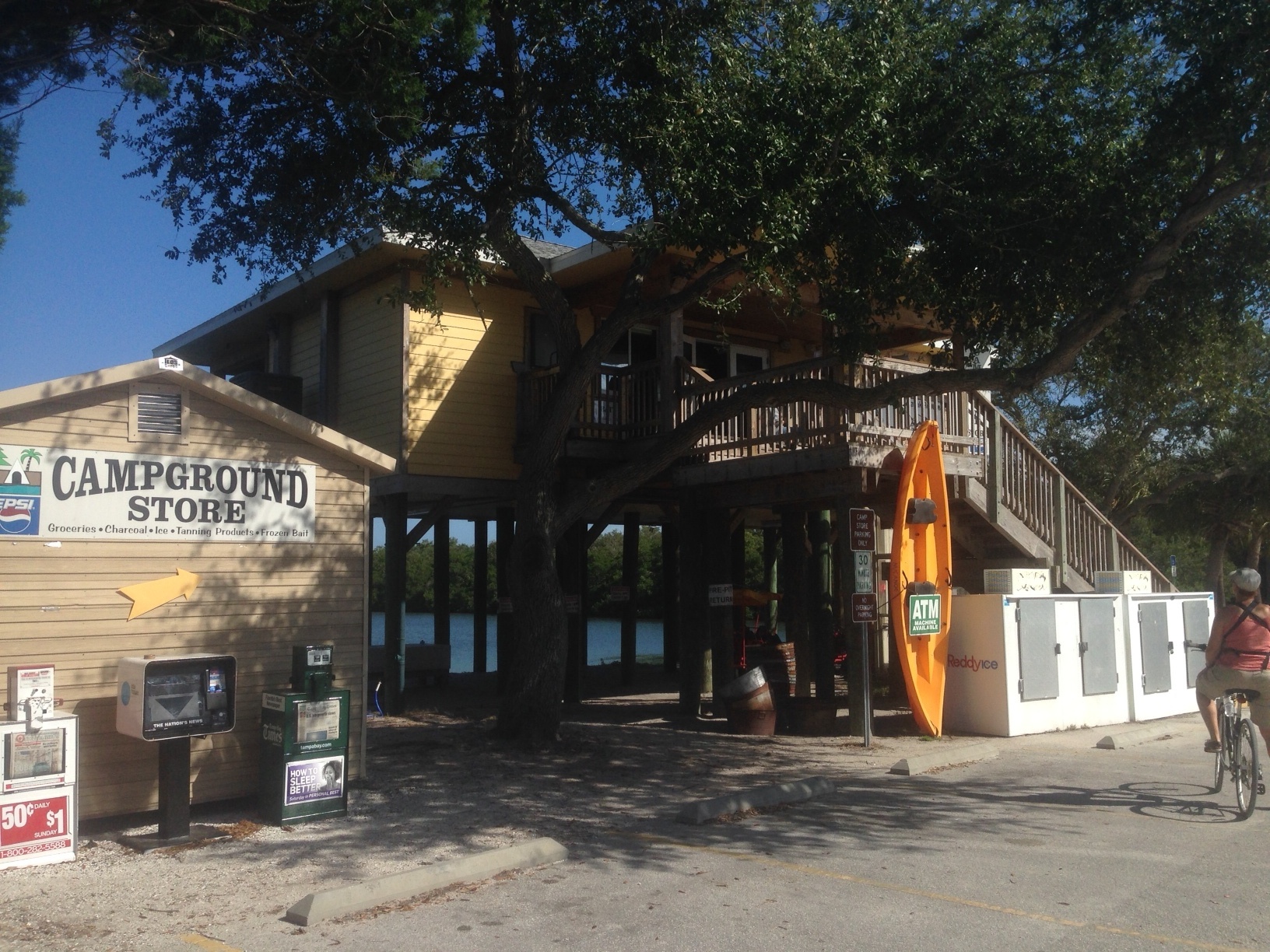 There is an area for campers with pets and a no pet area as well. It is nicely wooded and the sites are quite natural. Someone has a video of their tenting experience on You Tube that gives you a great idea of what it is like there. You can rent canoes and kayaks nearby and the general store is filled with all sorts of things so you really don’t need to leave though there is an excellent gourmet market or two on the way into the park on the Pinellas Bayway.